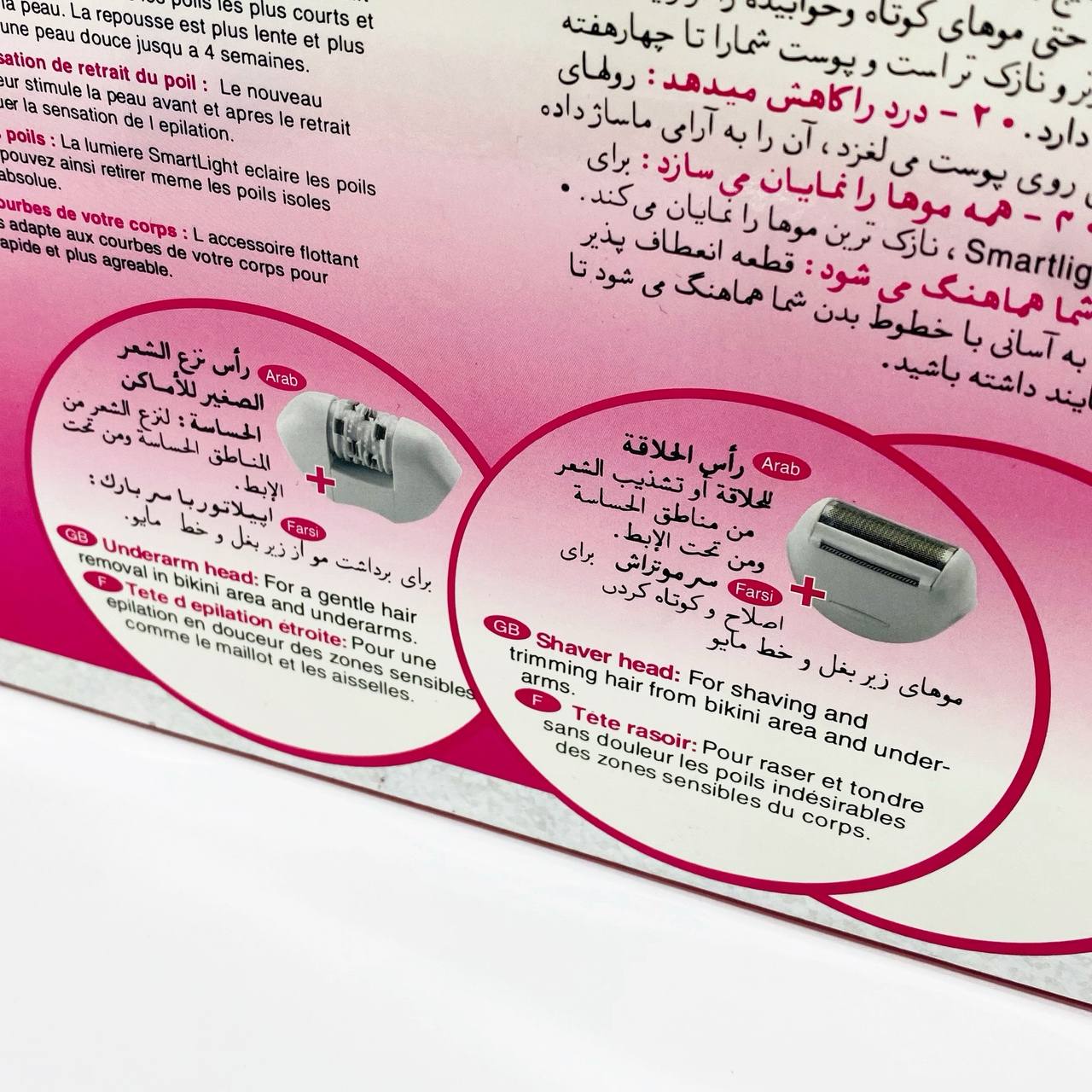 • رأس نزع الشعر الصغير للأماكن الحساسة ومن تحت الابط للحصول على بشرة خالية من اي شعرة ط