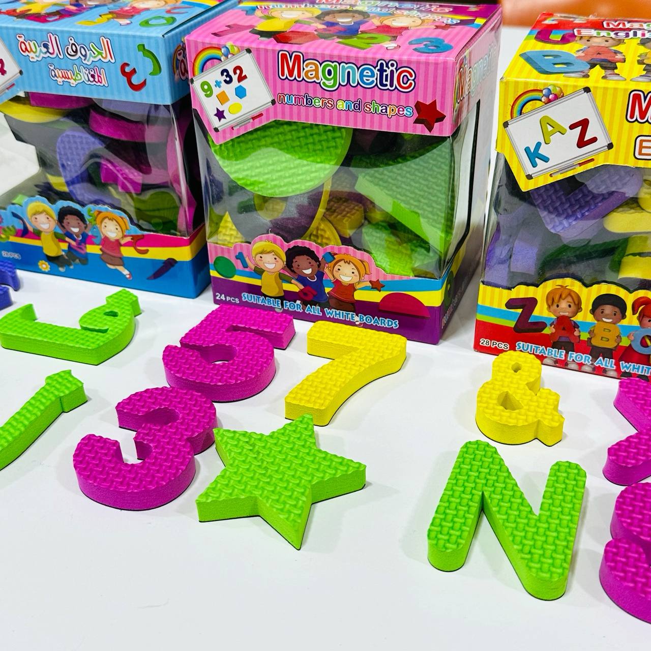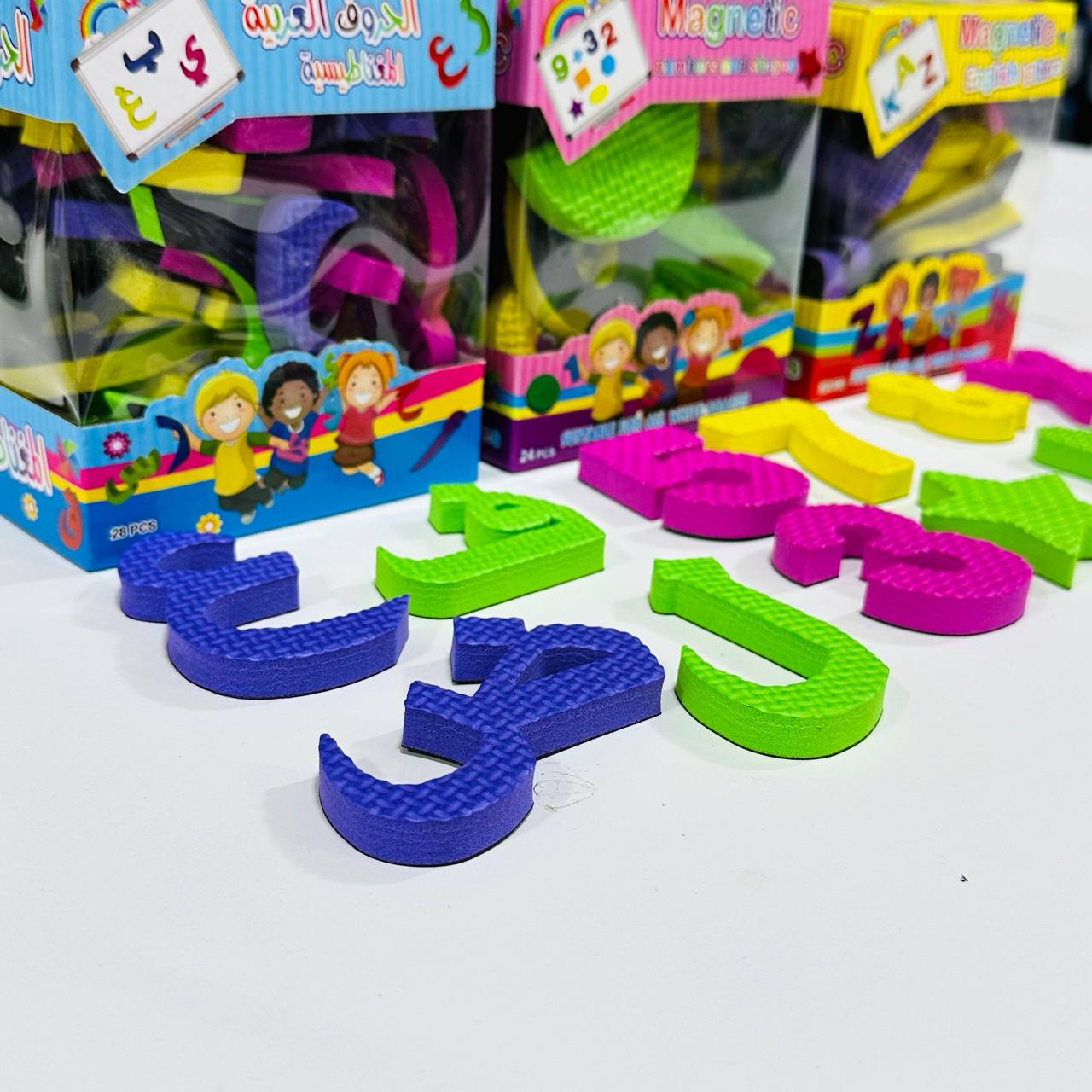 مجموعة حروف عربي انجليزي أرقام مغناطيسية فوم لاصقة على السبورة
