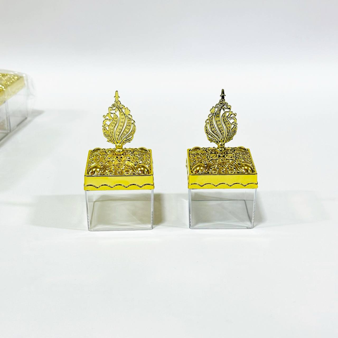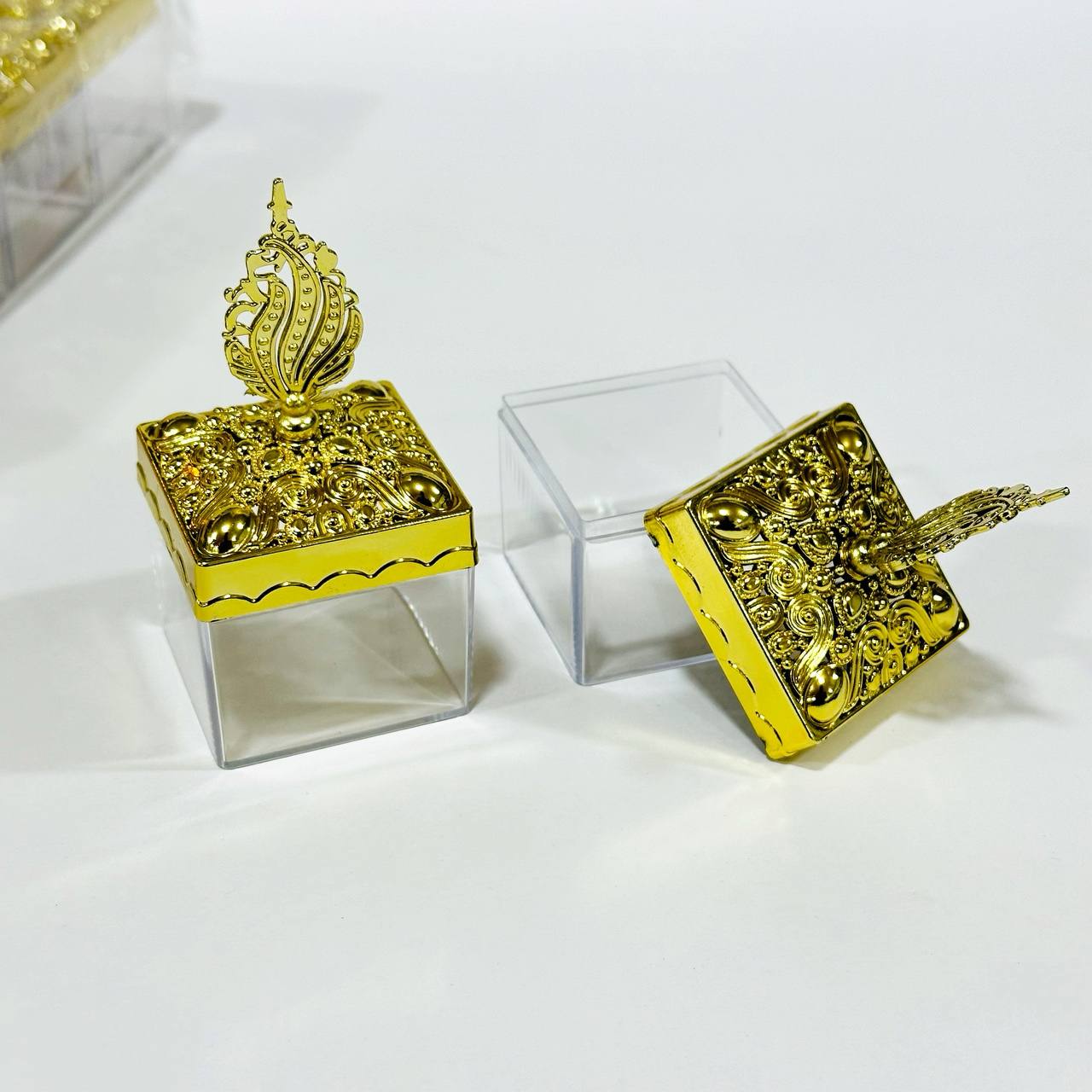 مجموعة علب توزيعات للمناسبات12 علبة اكريليك مع غطاء ذهبي مزخرف