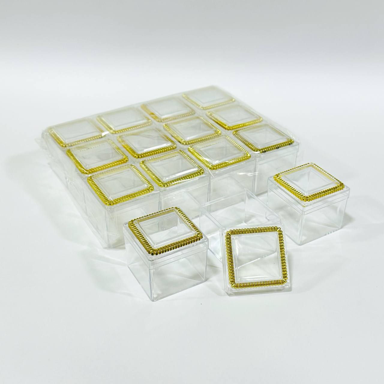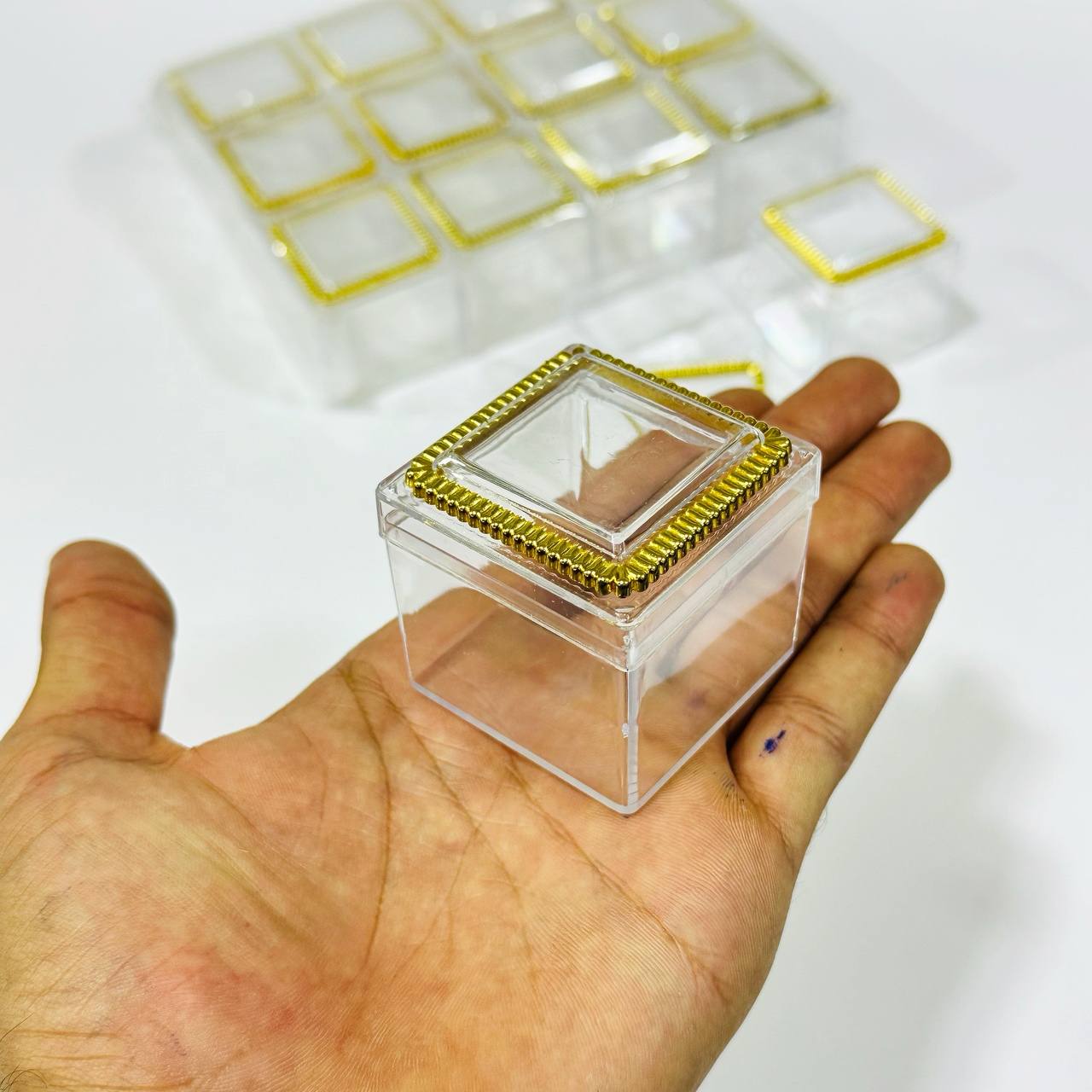 مجموعة علب توزيعات مناسبات وافراح 12 علبة اكريليك مربعه اطار ذهبي