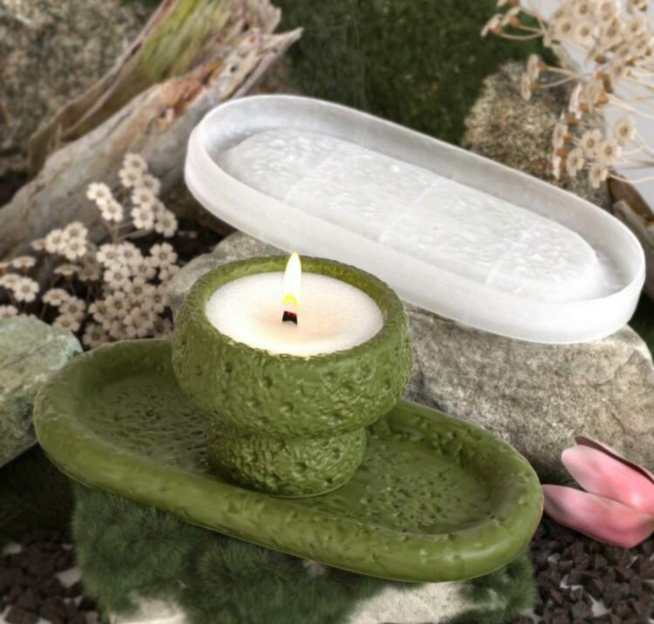 مجموعة من قالبين (2قطعة) من السيلكون صينية بيضاوية نقش حجري ، قالب لكأس شمعة،مبخرة،ملمس حجري WFHM77