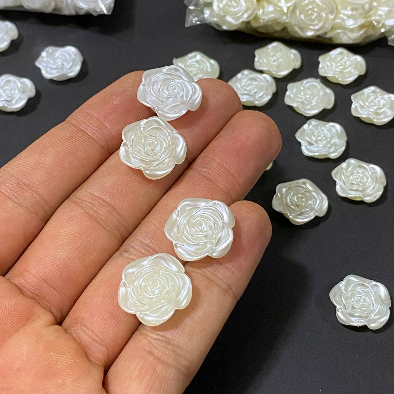 مجموعة ورد بلاستيك مخروم لصناعة الاكسسوارات والديكور 100 جرام، لون لؤلؤ ابيض وسكري
