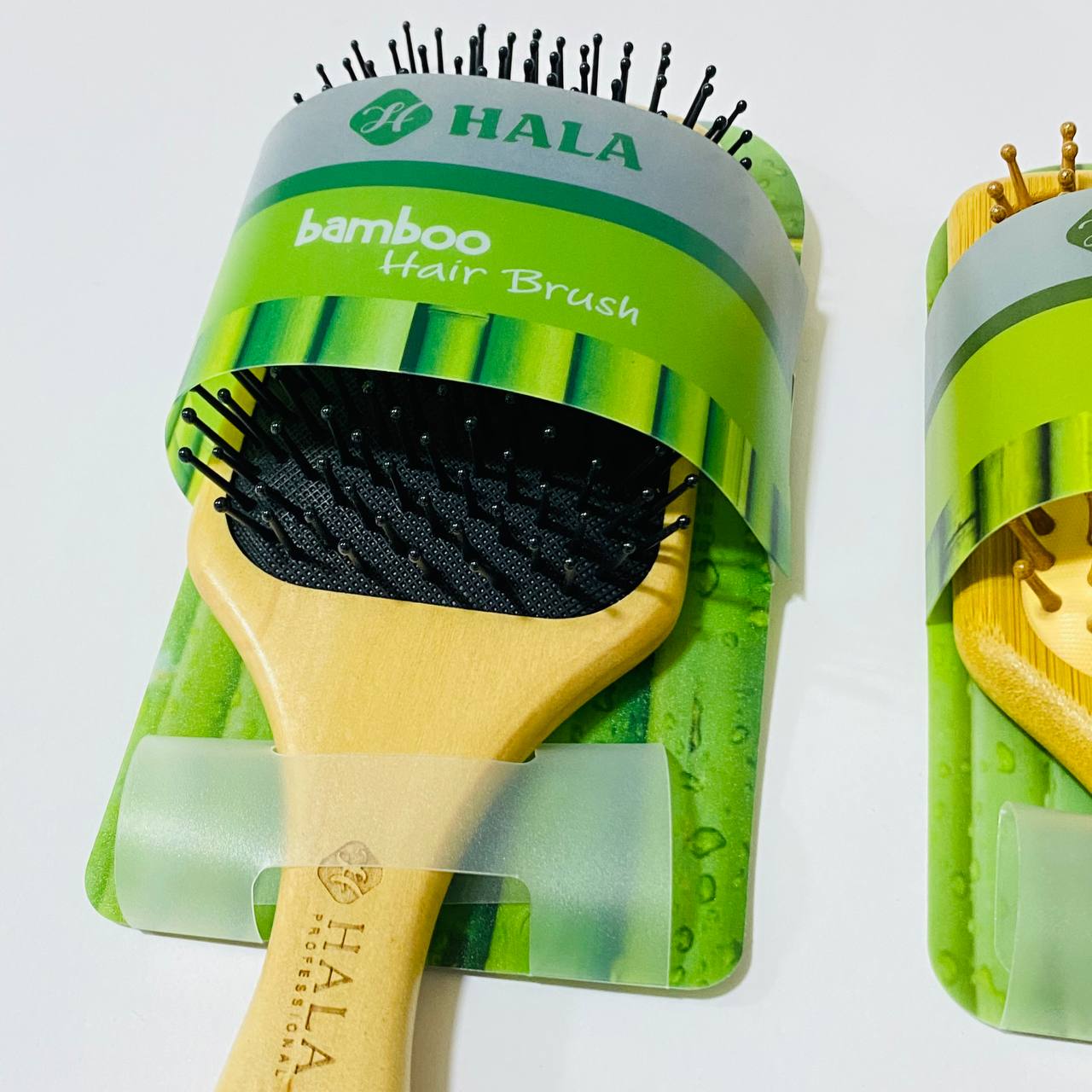 مشط مقبض خشبي لتصفيف الشعر من حلا ، خشبي كامل / اسود بلاستيك / اسنان حديد