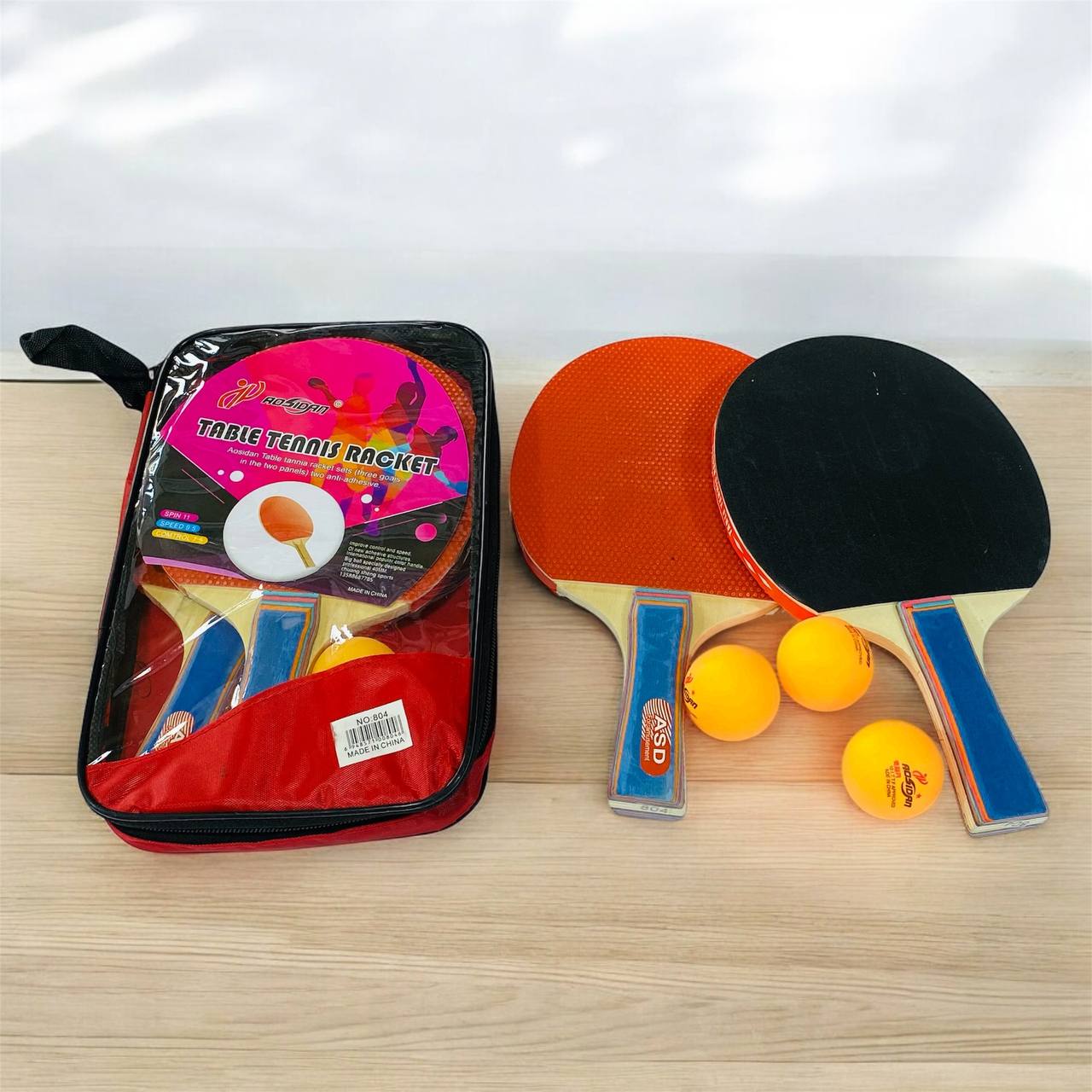 مضارب لعبة كرة تنس طاولة عدد 2 مضرب مع 3 كرات AOSIDAN