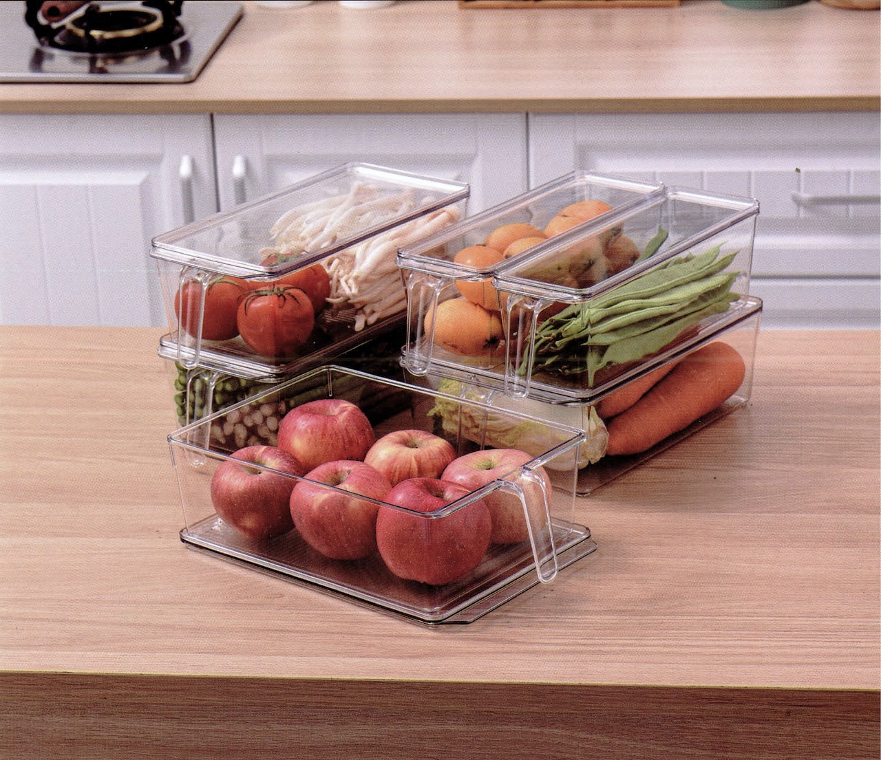 منظم ثلاجة فاخر شفاف 3 أحجام مع ذراع سهل الحمل