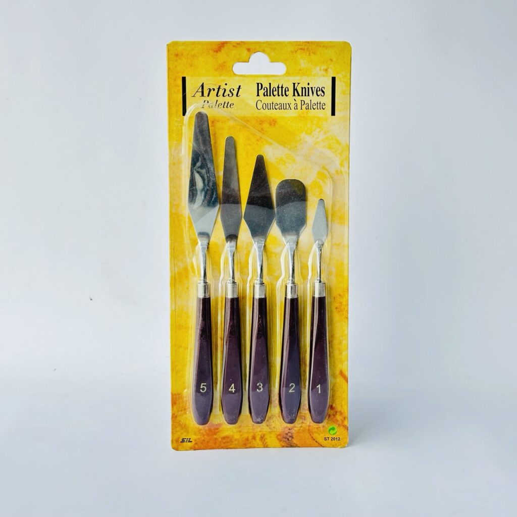 17.50 د.ل- مجموعة سكاكين الباليت للفنان تضم 5 قطع متنوعة مصنوعة من مواد عالية الجودة، مثالية لمزج وتطبيق الألوان على اللوحات بشكل احترافي.
