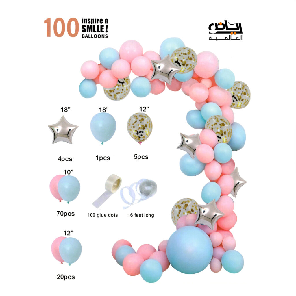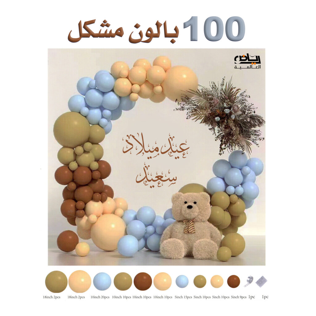 طقم بالونات مناسبة 100 بالون أعياد ميلاد وحفلات دبدوب