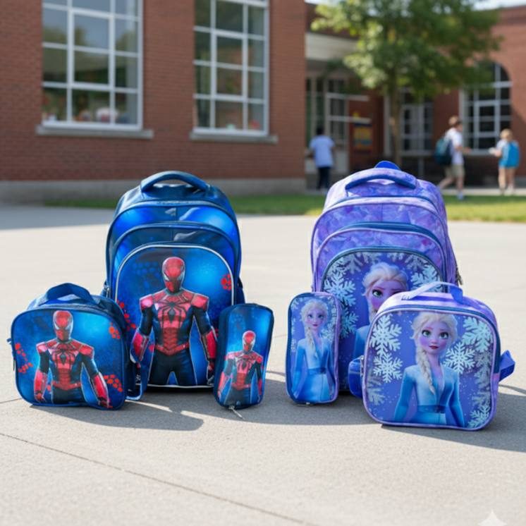 Sold By: متجر رياضحقيبة مدرسية 3 قطع مناسبة للصف من ثاني الى خامس ، سبايدر مان ، ايلسا