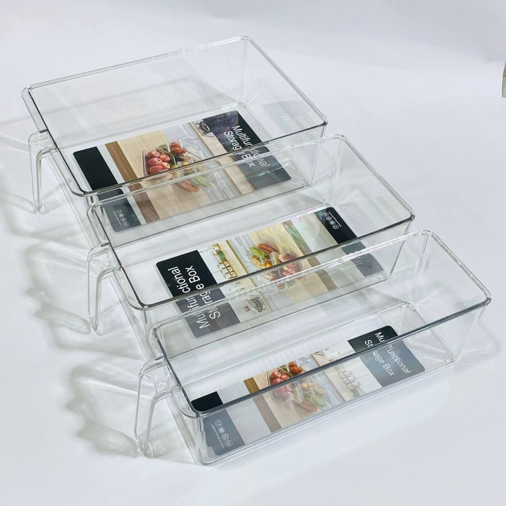 منظم ثلاجة فاخر شفاف 3 أحجام مع ذراع سهل الحمل