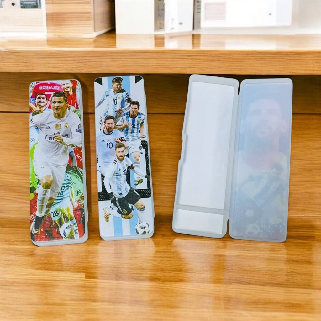 مقلمة أدوات فارغه صورة ميسي × رونالدو ، مناسبة لحفظ الادوات المدرسية