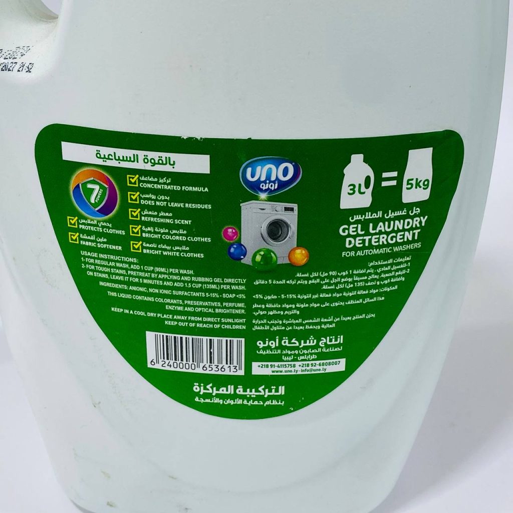 جل غسيل الملابس اونو للغسالات التوماتيك تركيبة مركزة 3 لتر قوة ازالة البقع للملابس البيضاء والملونة