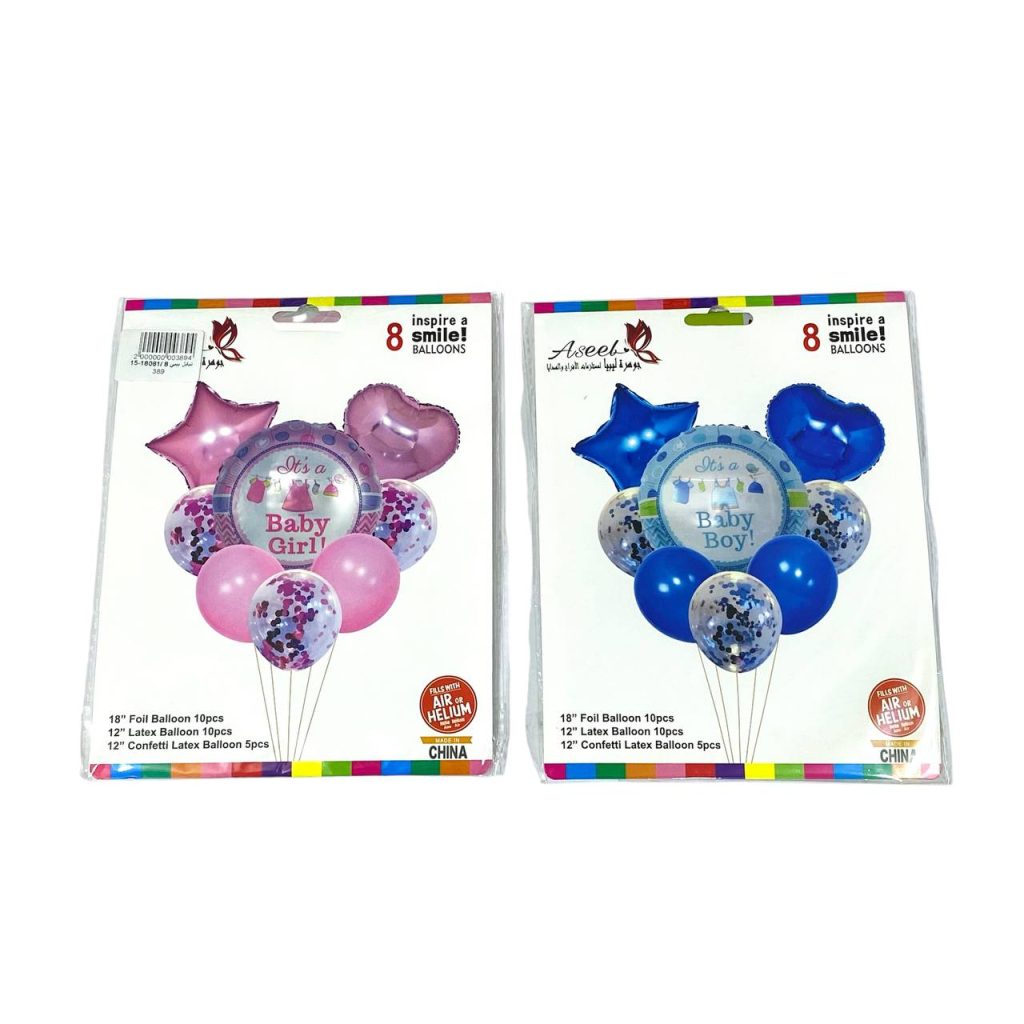 طقم بالونات بيبي بوي & بيبي قيرل 8 قطع لتزيين مناسبات المولود