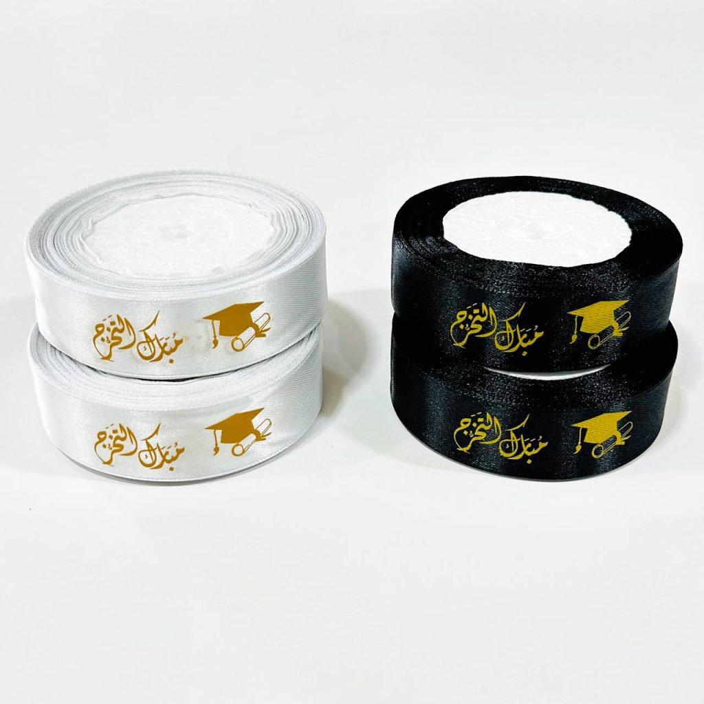 شريط تغليف هدايا تصميم مبارك التخرج لتزيين بوكسات وتوزيعاتكتاب