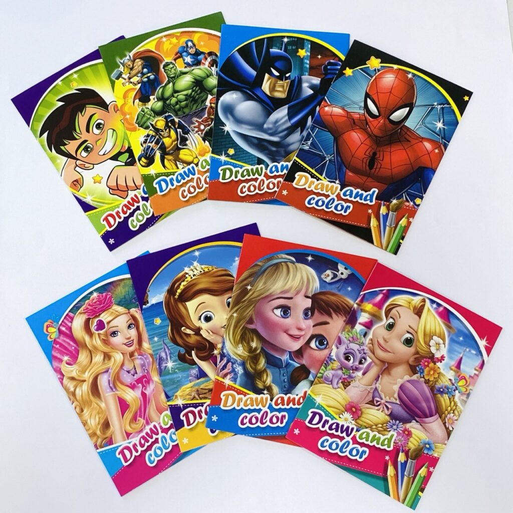 كراسة تلوين شخصيات كرتونية للأطفال حجم متوسط مقاس 16.5*23.5 سم