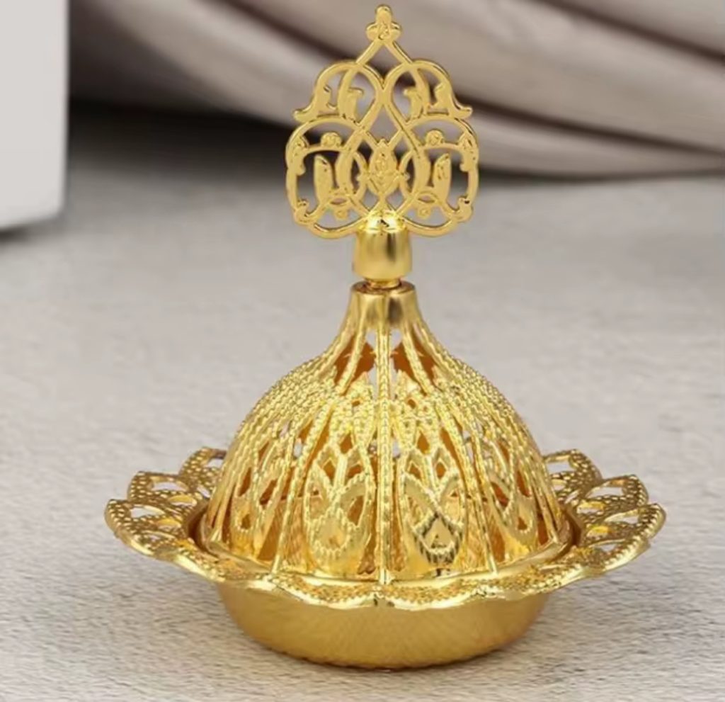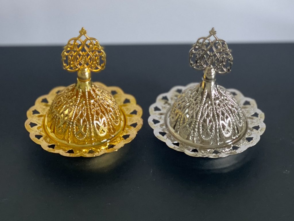 قاعدة مبخرة منقوش بالمغطاء لونين فضي وذهبي WFHM77