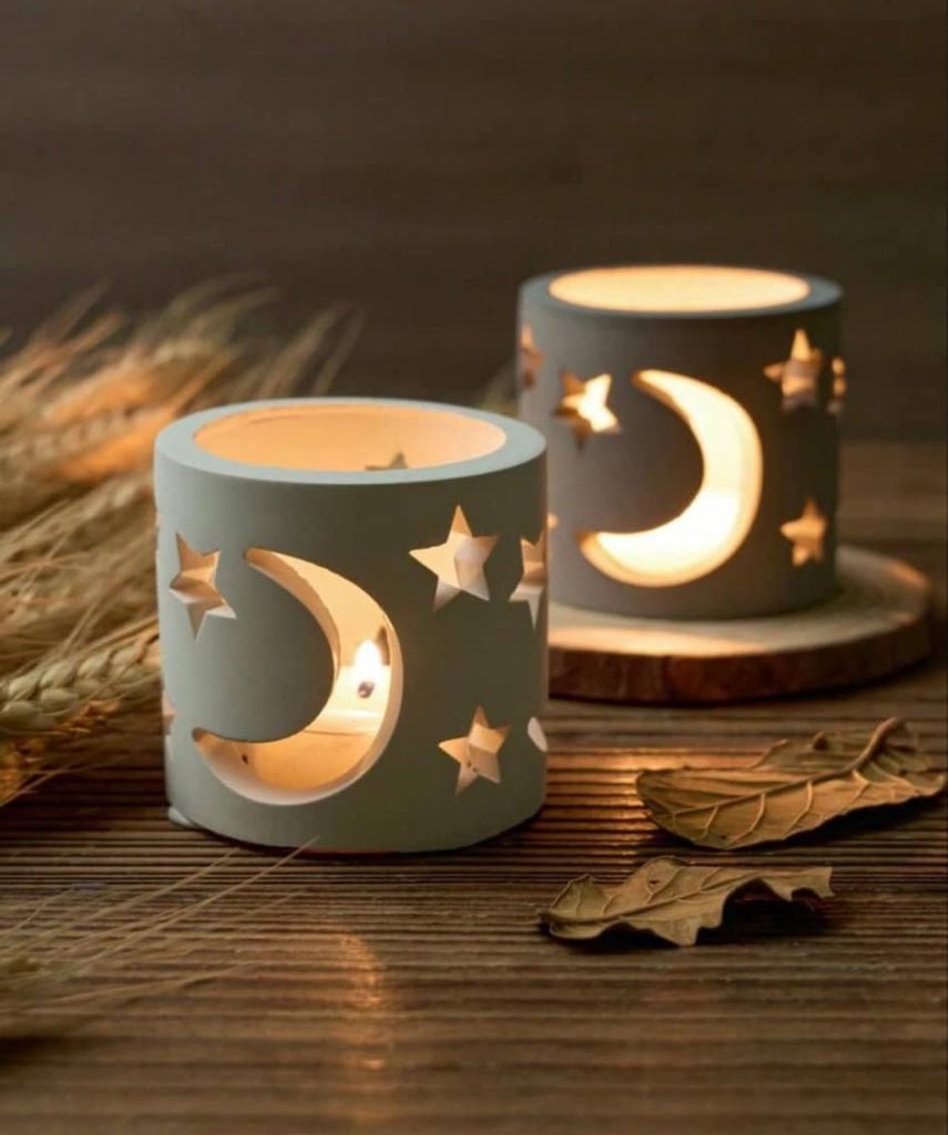 قالب سيلكون نجمة وهلال وقلب لصب الجبس مع حاملة شمع ديكورات المنزل WFHM77